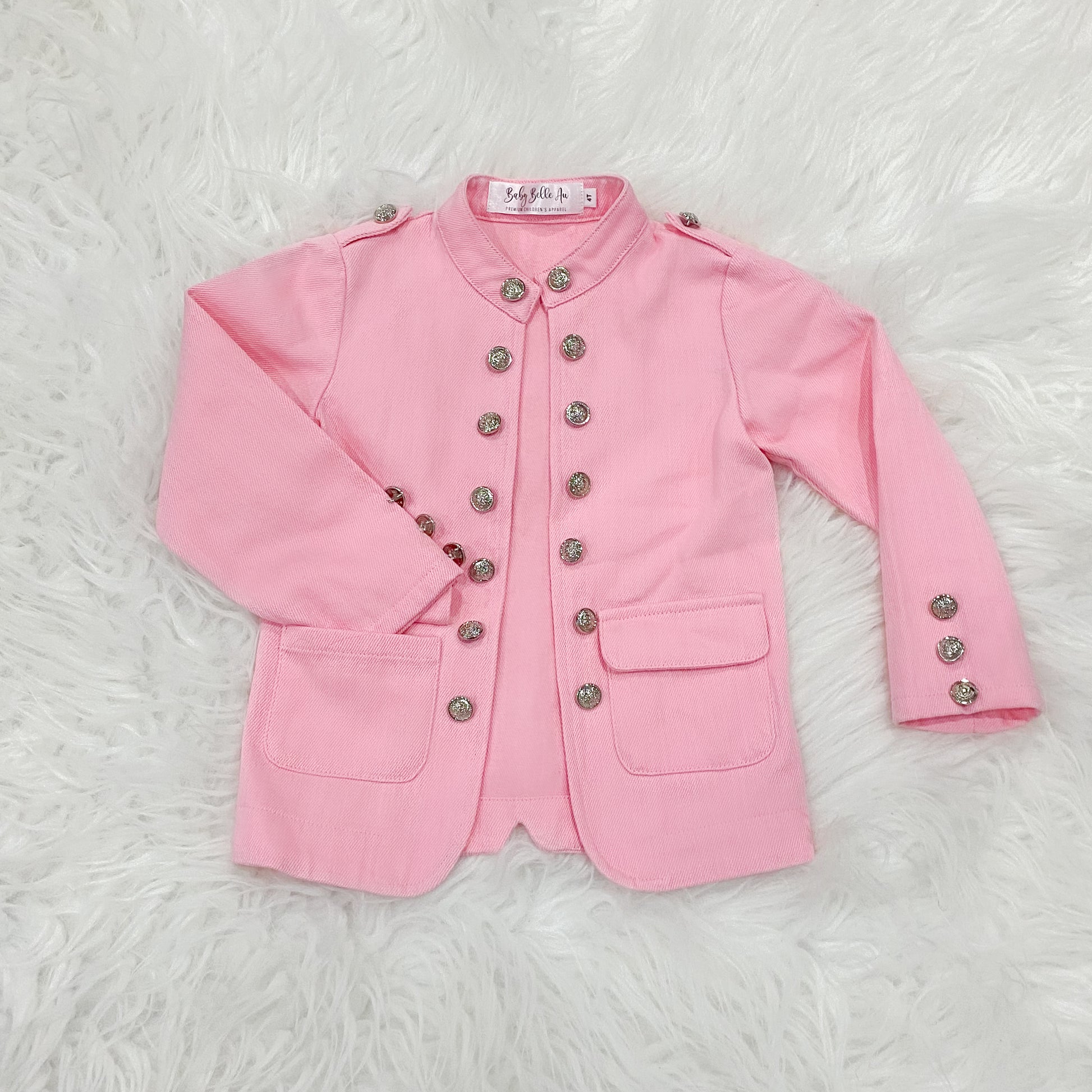 - Full silver button detailing on front, sleeves & shoulders (non functioning buttons.)